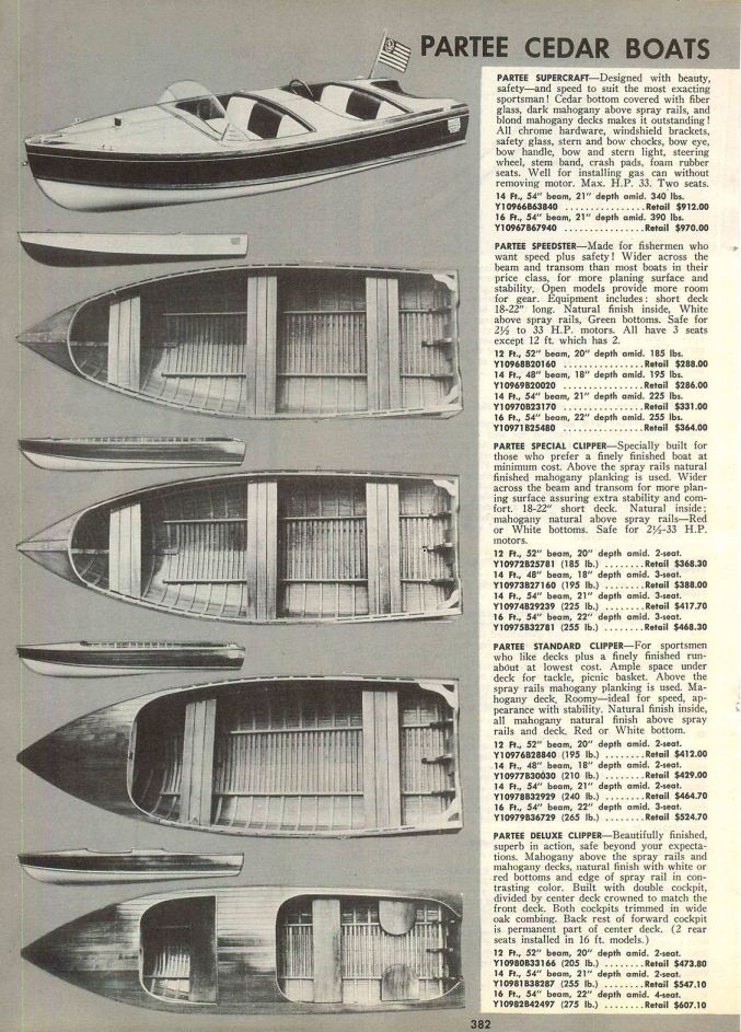 Revision as of 01:31, 24 March 2015 by HandyAndy (talk | contribs) (1956 Partee boats line from a catalog page)