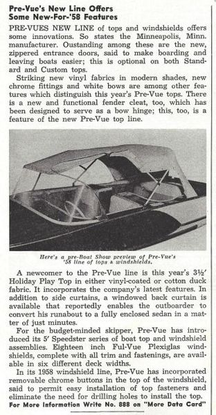 1958 Pre-Vue article Jan Boating Industry