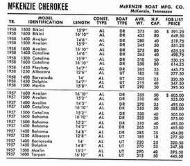 1957 to 1958 Cherokee outboard boat models from a 1960 trade-in guide