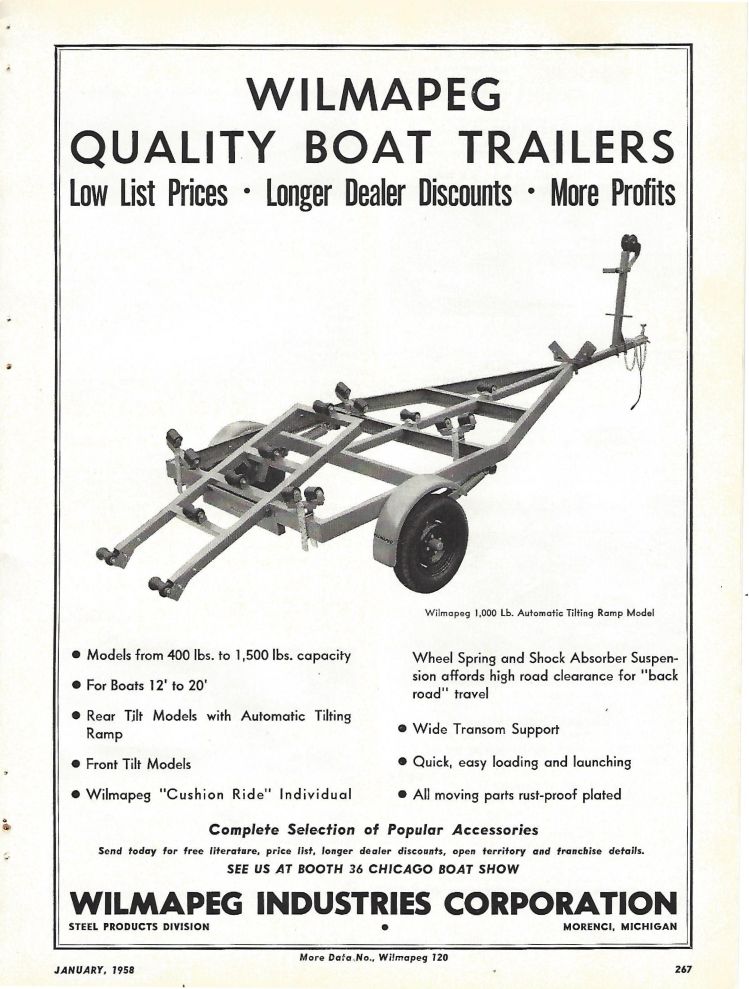 1958 Wilmapeg Trailers ad Jan Boating Industry