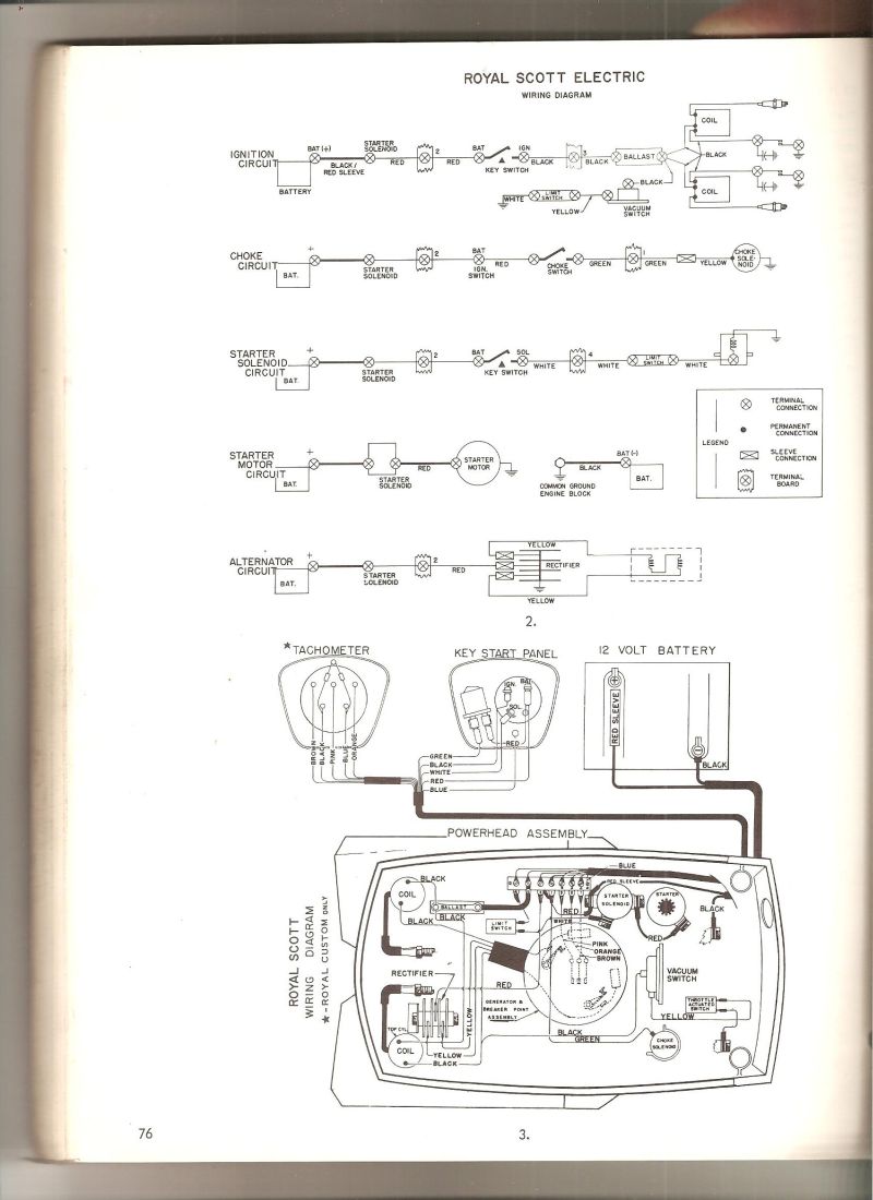 I have attached a wiring diagram for a 1961 Royal Scott and it shows the ballast resistor between the ignition switch and the positive terminals of the two coils.