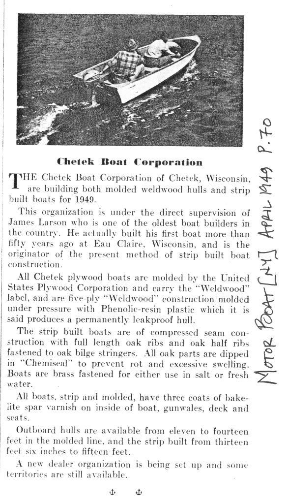 Re: 1949 Chetek Boat 14 years 3 months ago #50416