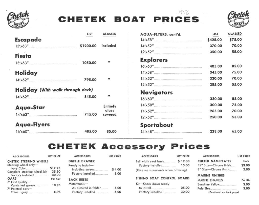 1956 Chetek Boat price list 14 years 2 months ago #51569