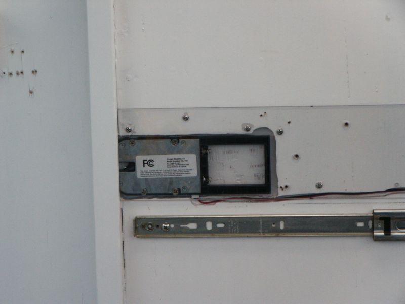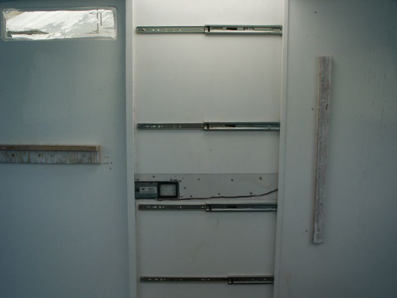 ok i bit the bullet and installed my electric lock on my pocket door and i wanted a couple of cabin lights so i finished the ceiling panels marked for the lights cut and then painted. installed the pocket door panel and routed a channel for the wires.