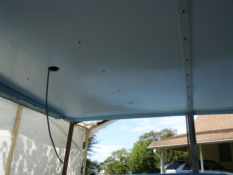 pre-wired the ceiling for the lights installed the ceiling panels. i didn't want any holes or nuts and bolts on the outside of the side panels so i fabricated a wood panel for the inside so i can mount the controls and stuff without drilling through the skin. i 5200ed the panel and clamped it. i also added a little down facing light above the controls i have instrument lights in the gauges but nothing on the side. i will also have a few lights in the storage compartments and i found some touch control dimmers. my gps antenna will be under the bow out of sight. i see now i should have started all of this some time back but had the time and no money and now the money but no time. so there ya go. i am keeping a picture journal of the build so pictures are a bound ,,oh and i dont know if i mentioned it but i am polishing my own aluminum cheaper i bought a buffer ..