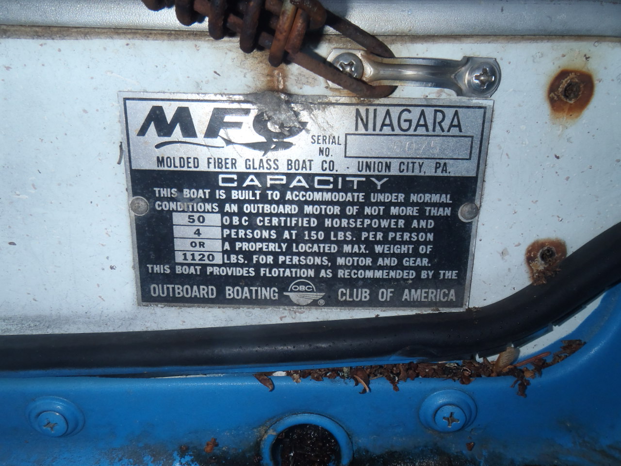 Dave Nau - 1966 MFG Niagara with 1963 Mercury 350 (35hp) outboard and 1966 Tee Nee trailer. Second boat is a 1962 MFG Edinboro with a 1984 Evinrude 70hp and Holsclaw trailer.