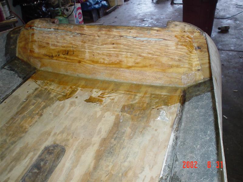 When I first picked up the Skagit, the transom was evidently damaged. I had fiberglass delamination all over the deck, transom and areas that I can't even describe. I knew at that point there was a serious problem. Since the boat was built in 1958 and was stored outside, I knew I was in trouble.