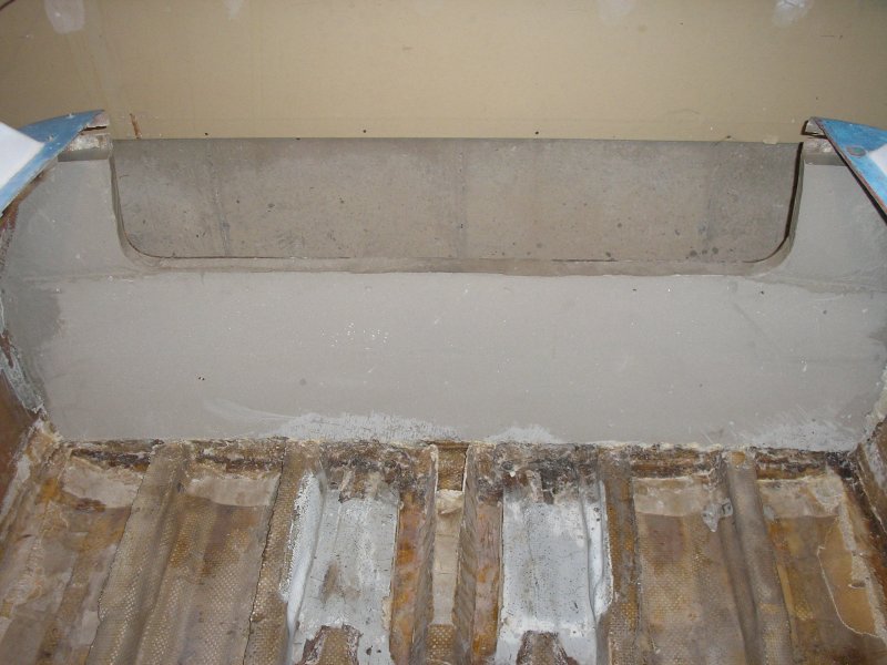 I elected to use braces running from the stringers in my hull, running into the form similar to what you would see on a house foundation. Once the forms are set, you often see braces leading to the ground on both sides in order to keep the forms set until the cement cures. I took this approach.