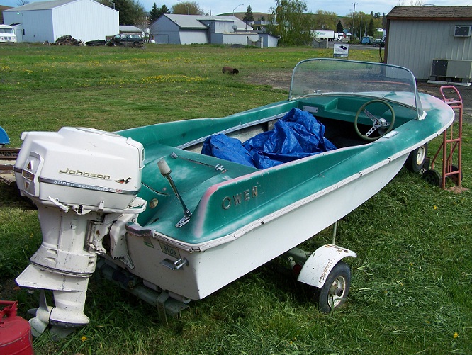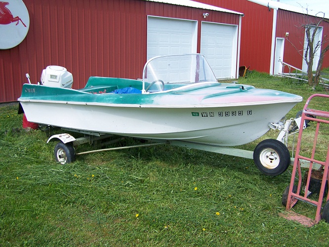 1958 Cutter Avon 17', '59 Johnson Fat Fifty, Yellow on Yellow, original Riverdale trailer